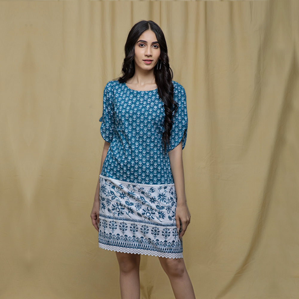 Ruhi Singh in Sea Green Block Printed White Kantha Kurta