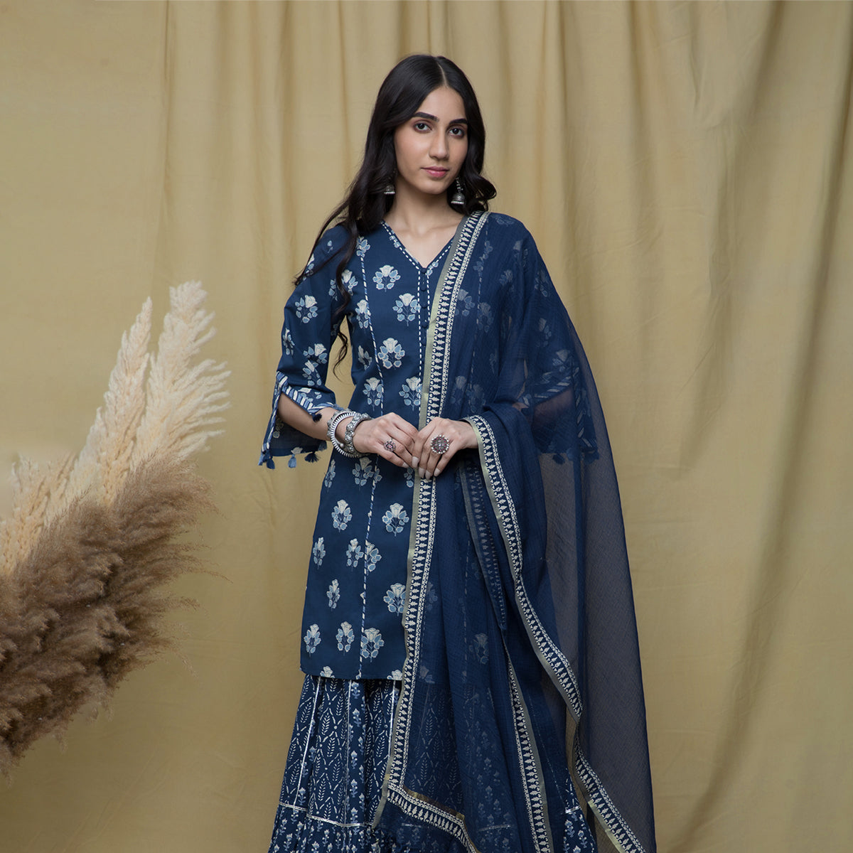 Charul Malik in Indigo Hand Block Printed Sharara Set