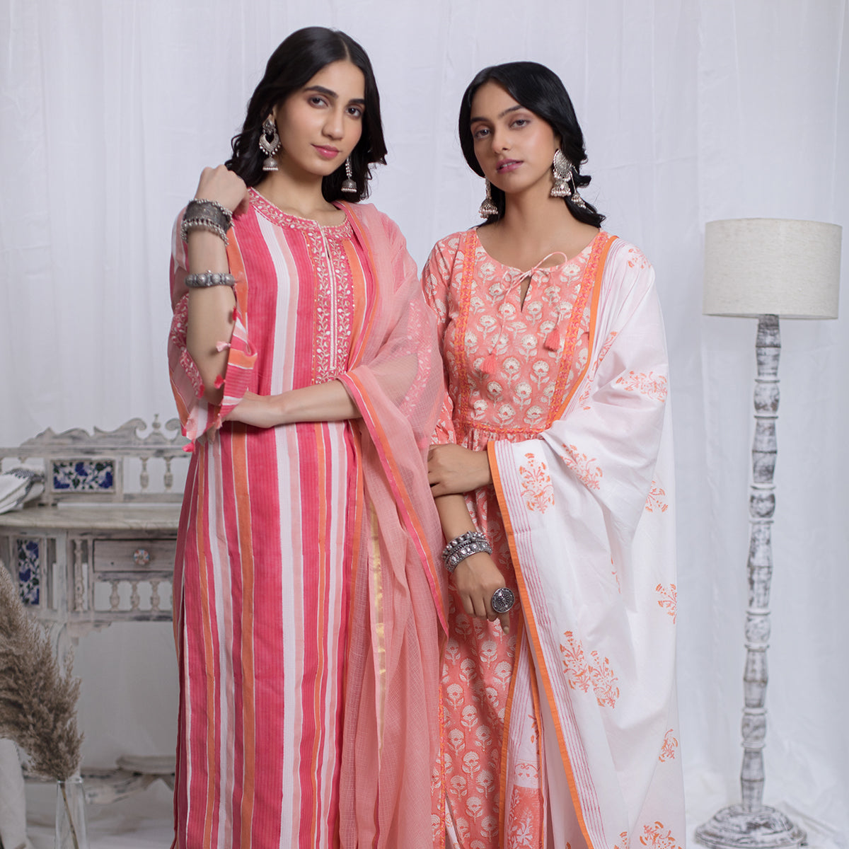 Ruhi Singh in Rust Red Hand Block Printed Anarkali Suit Set